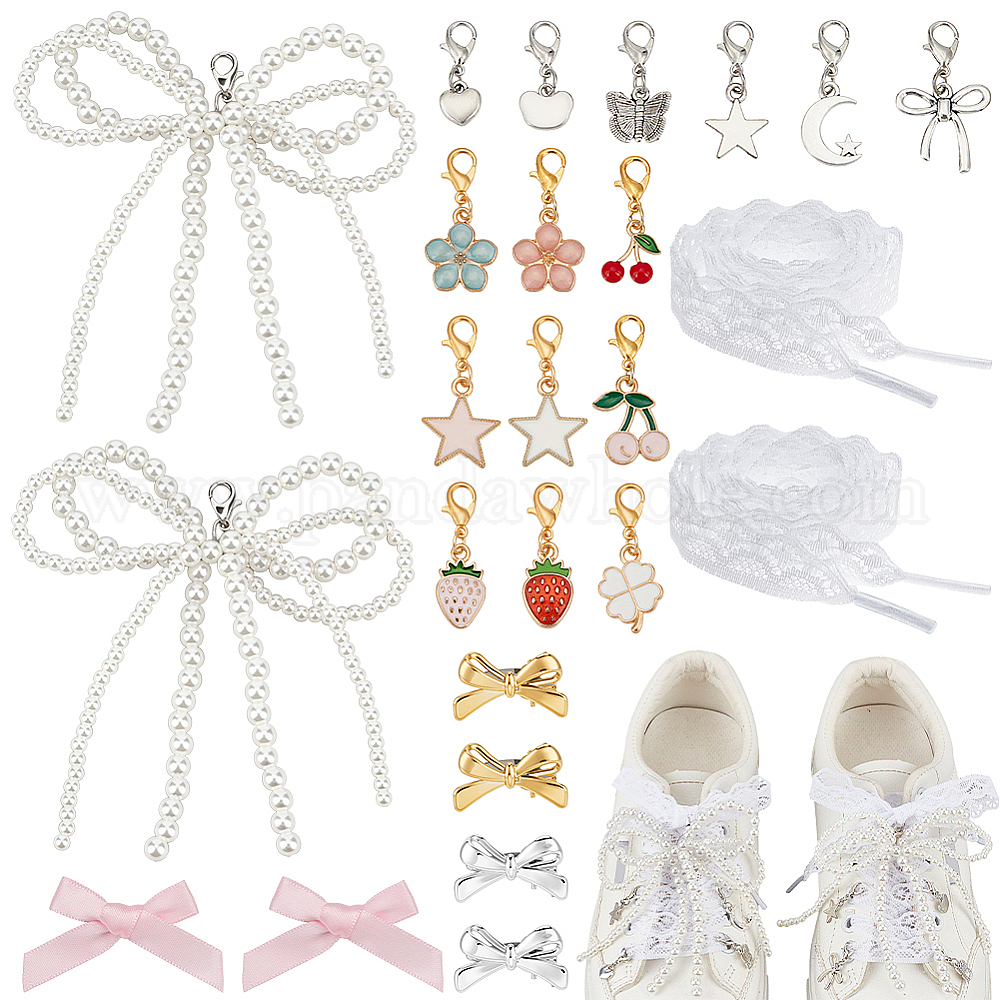 Подвески для обуви из смолы и сплава, заколки для волос из пластиковой кожи аллигатора, железные броши и наборы шнурков из полиэфирного шнура, Сплав с застежками когтя омара, разнообразные, платиной и золотом