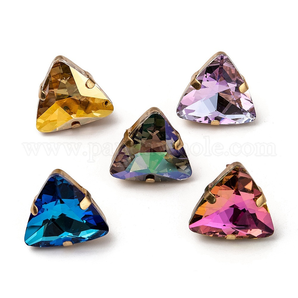 Латунь обувь пряжка клипы, со стеклянными стразами, для украшения сумки для обуви, кошелек аппаратные аксессуары, треугольные