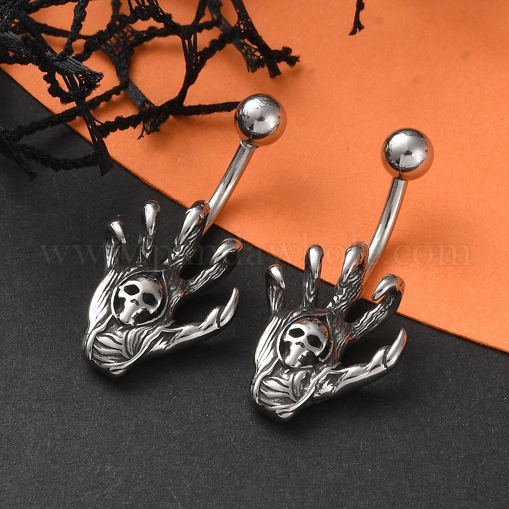 Череп, рука дьявола 316 хирургические кольца из нержавеющей стали для пупка, пирсинг пупка кольца, изогнутая штанга украшения для тела для женщин