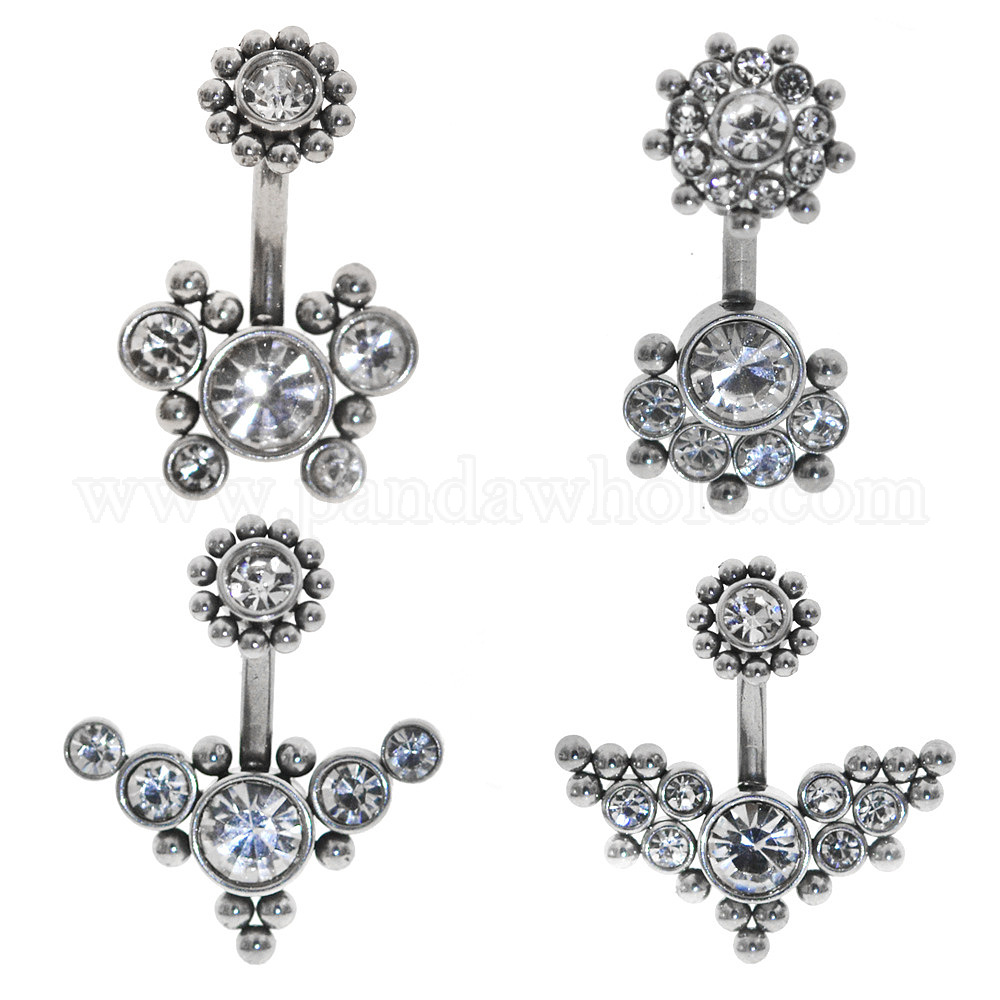 • Цветок Кольца для пупка из нержавеющей стали с прозрачным кубическим цирконием 15 калибра, пирсинг пупка кольца, изогнутая штанга украшения для тела для женщин, цвет нержавеющей стали, цветок, 11 мм, штифты : 1.6 мм