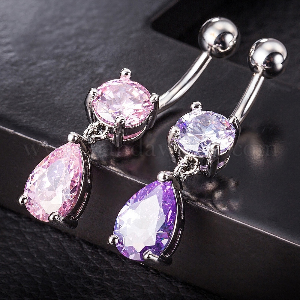 316l хирургические кольца из нержавеющей стали с кубическим цирконием в форме капли для живота, цвет нержавеющей стали