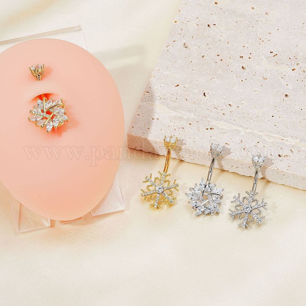 Шикарные и простые латунные изогнутые кольца для пупка в форме штанги со снежинками и кристаллами