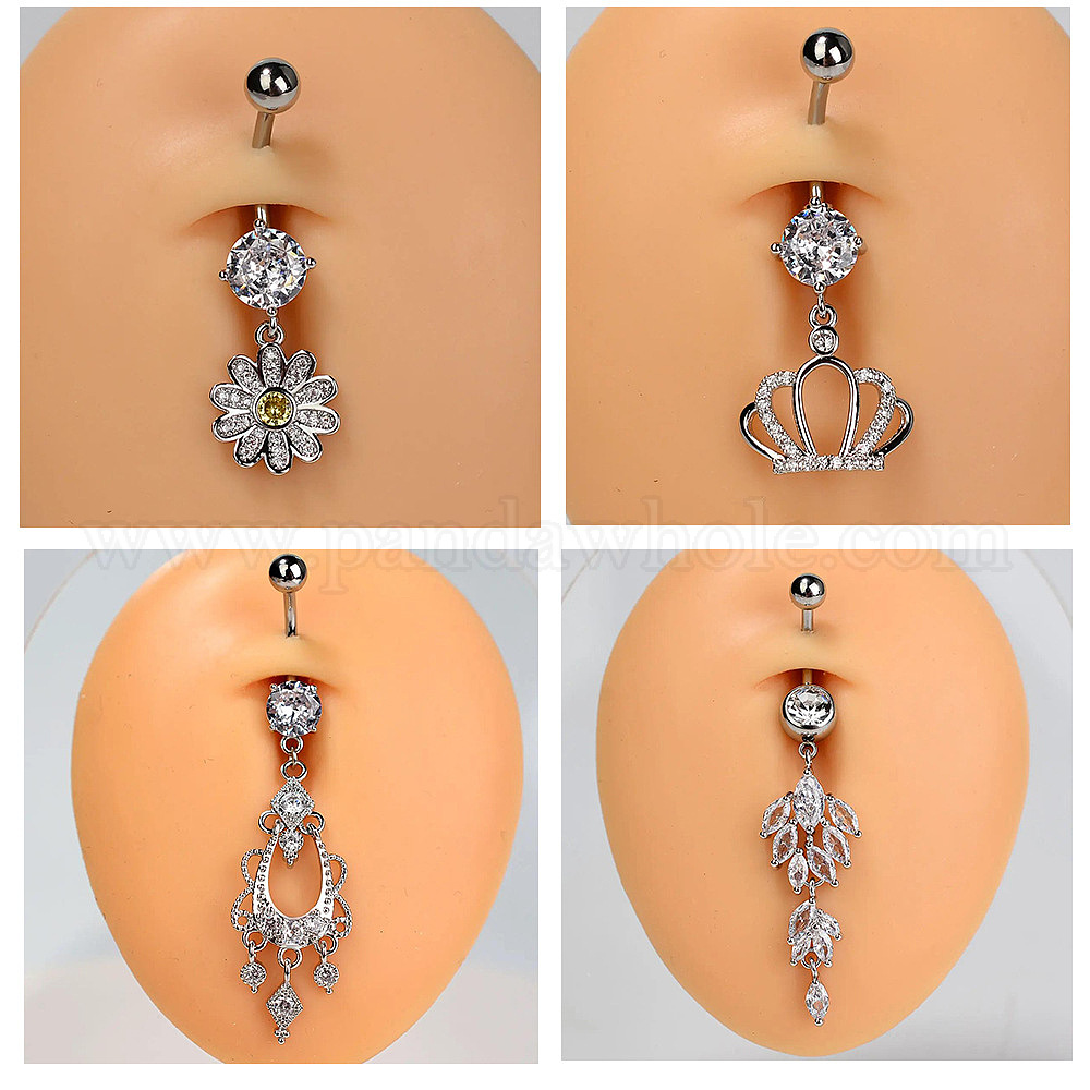 304 Кольца для живота в форме изогнутой штанги из нержавеющей стали с прозрачным кубическим цирконием, позолоченный/серебряный цвет