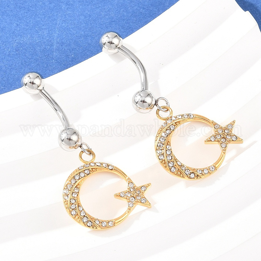 316 Изогнутые кольца для пупка в форме штанги из нержавеющей стали с кристаллами и стразами, монн со звездой