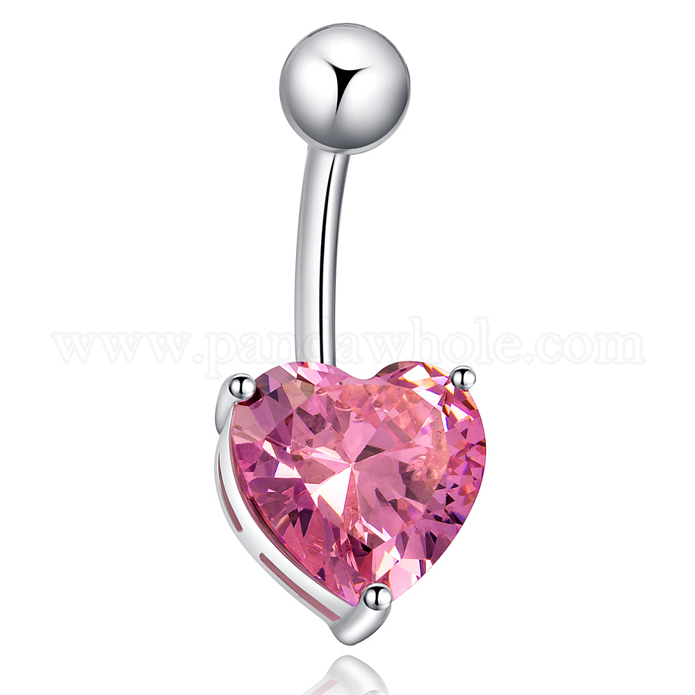 Украшения для тела сердце кубический цирконий латунь кольцо для пупка кольцо для пупка кольца для живота, с 304 стержнем из нержавеющей стали, 10x32 мм