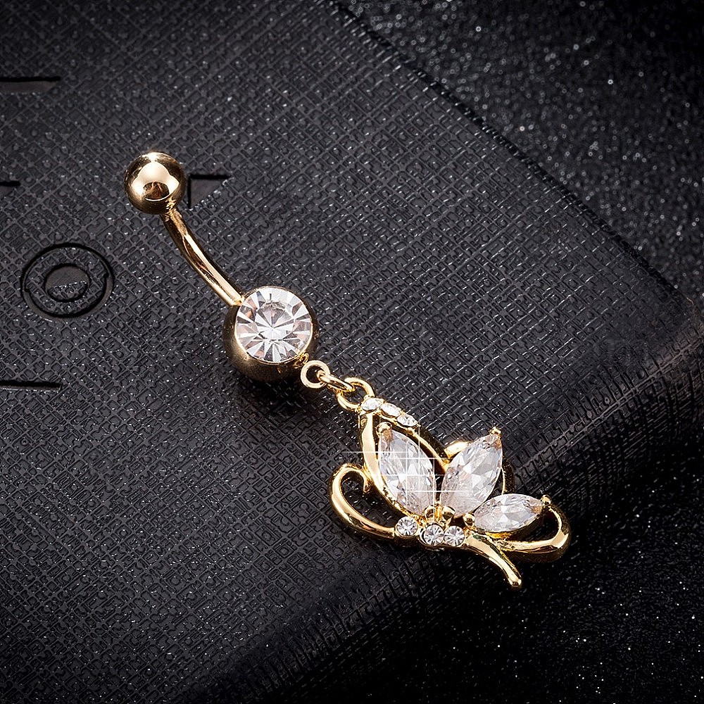 Латунное кольцо пупка с фианитом, кольца живота, с 304 стержнем из нержавеющей стали, без кадмия и без свинца, бабочка