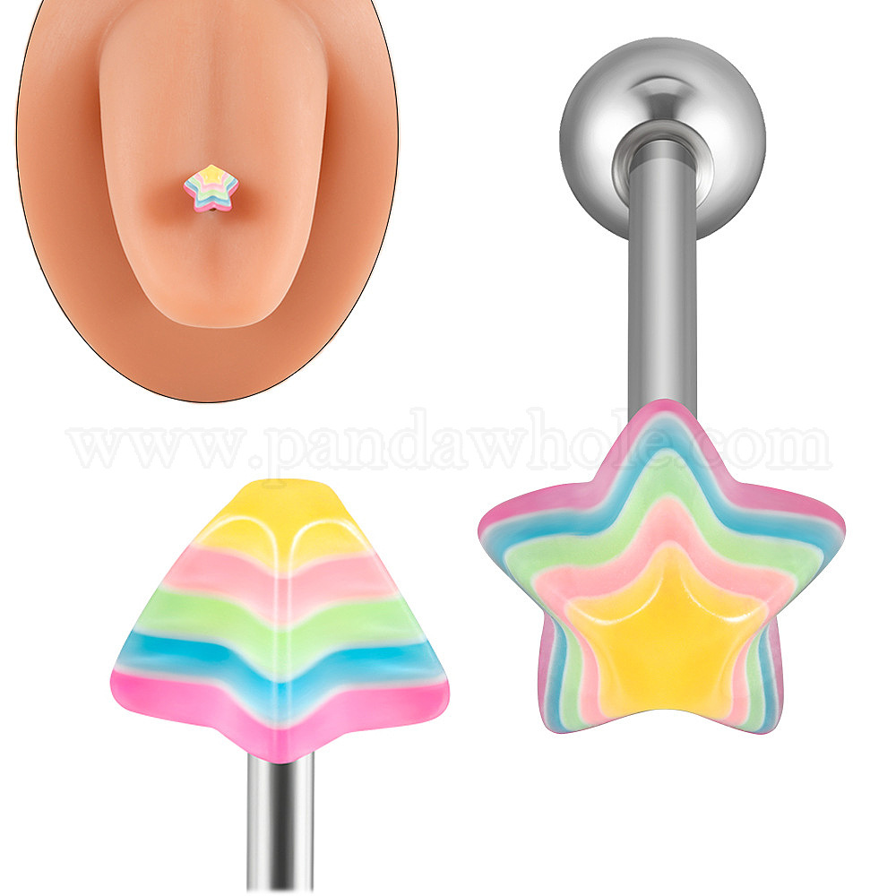 304 прямая штанга из нержавеющей стали и смолы в форме цветной звезды 15 кольца для пирсинга языка калибра для женщин и мужчин