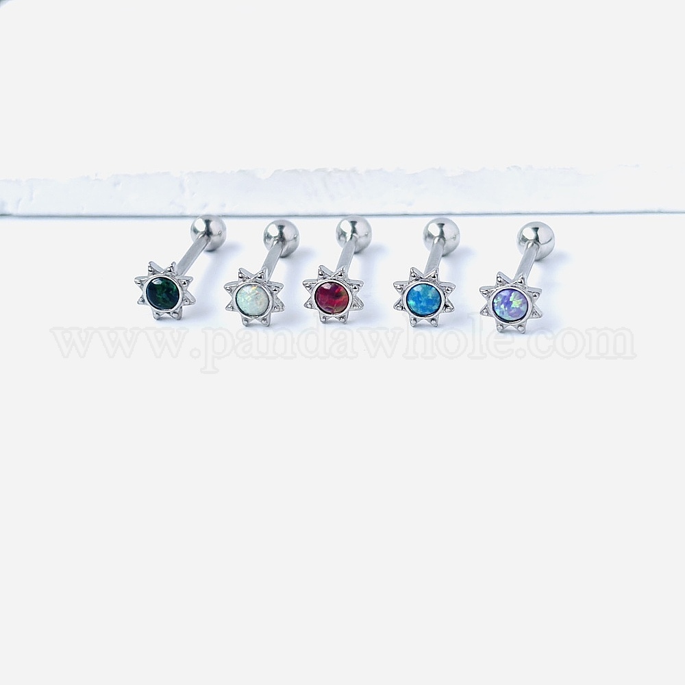 Sun 316l хирургические кольца для языка из нержавеющей стали с синтетическим опалом, цвет нержавеющей стали