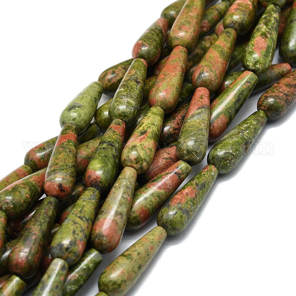 • Унакит Природные Unakite бисер нитей, капля воды, 30x10 мм, отверстие : 1.4 мм, около 13 шт / нитка, 15.75'' (40 см)