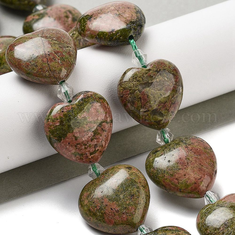 Природные Unakite бисер нитей, сердце, с бисером
