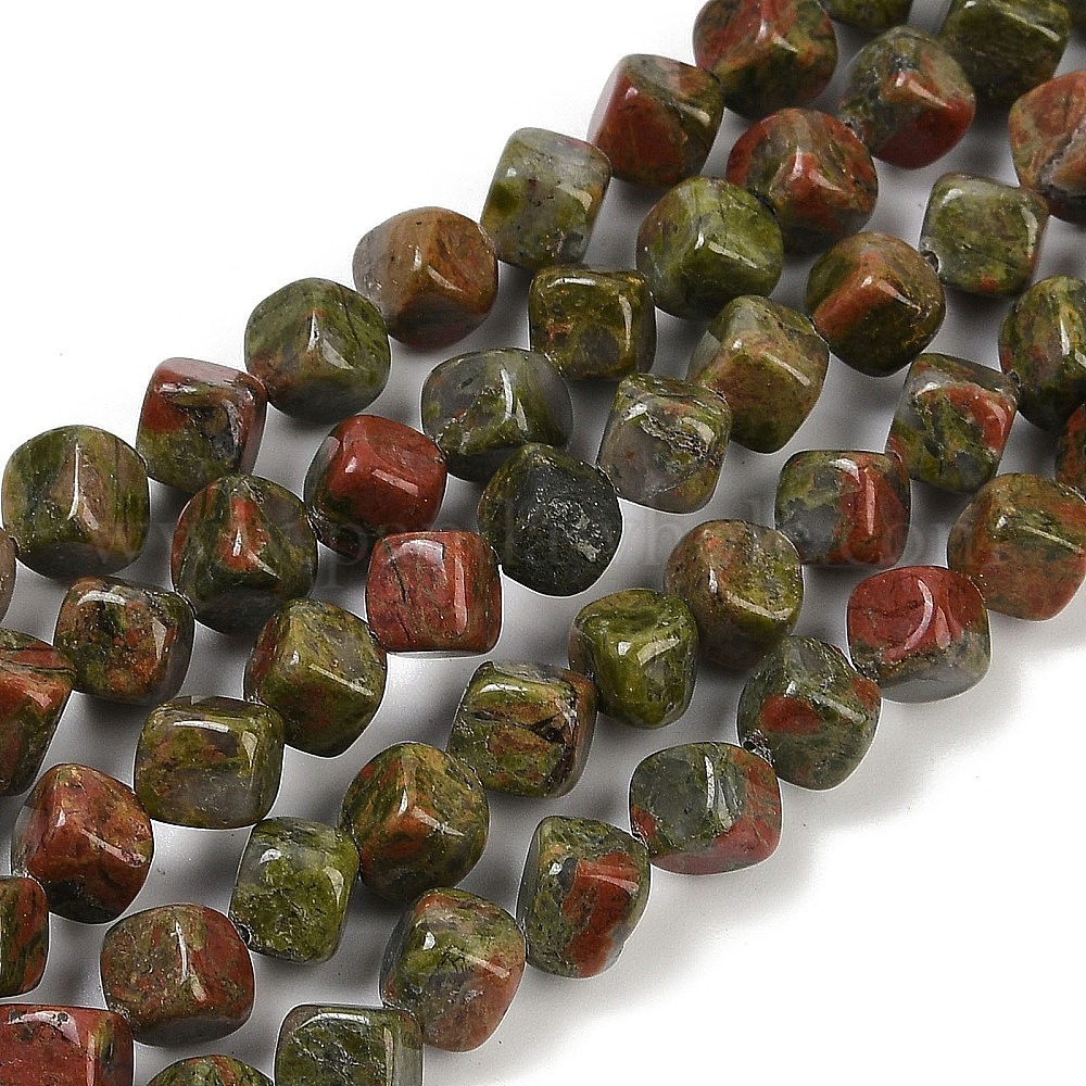 Природные Unakite бисер нитей, кубические