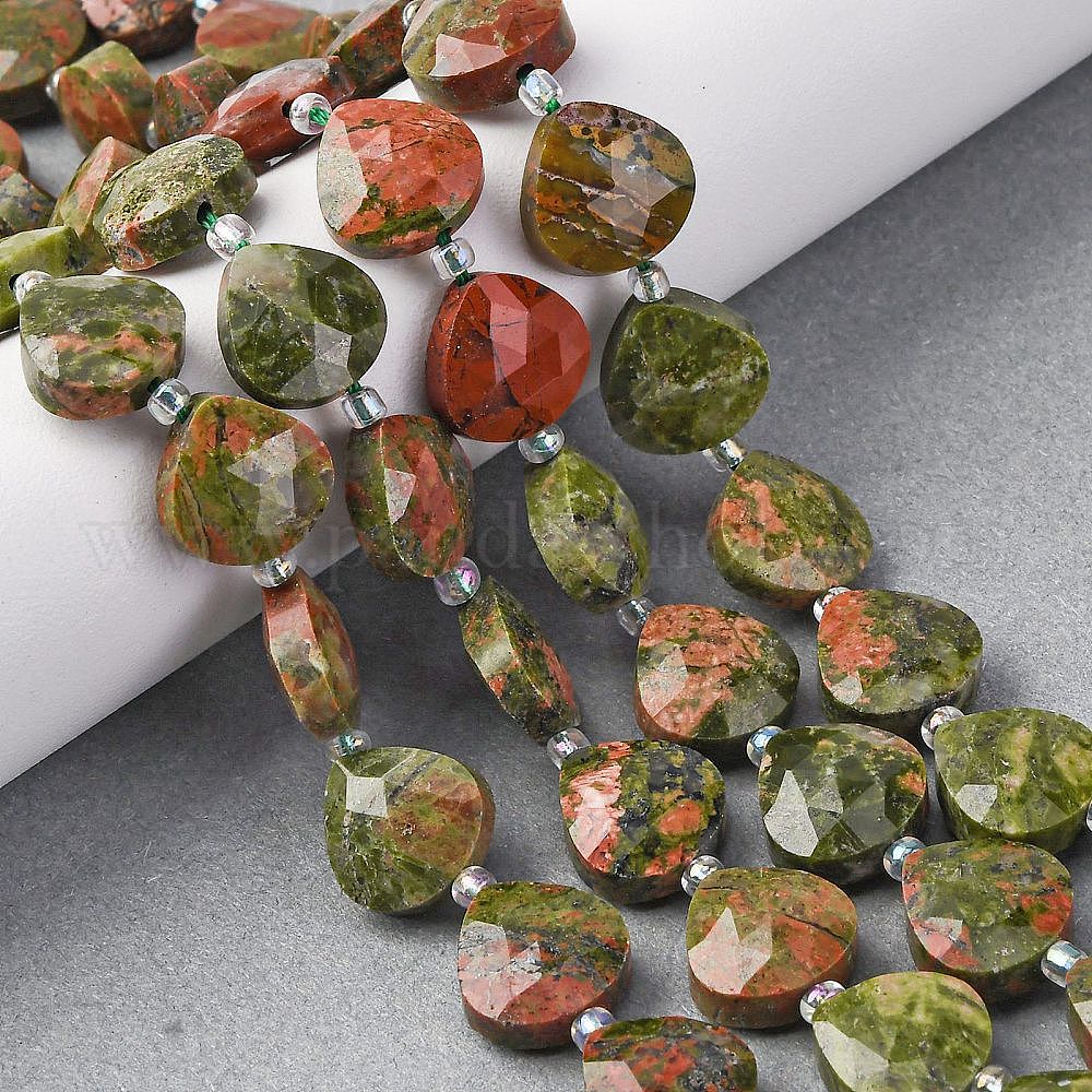 Природные Unakite бисер нитей, граненое сердце, с бисером