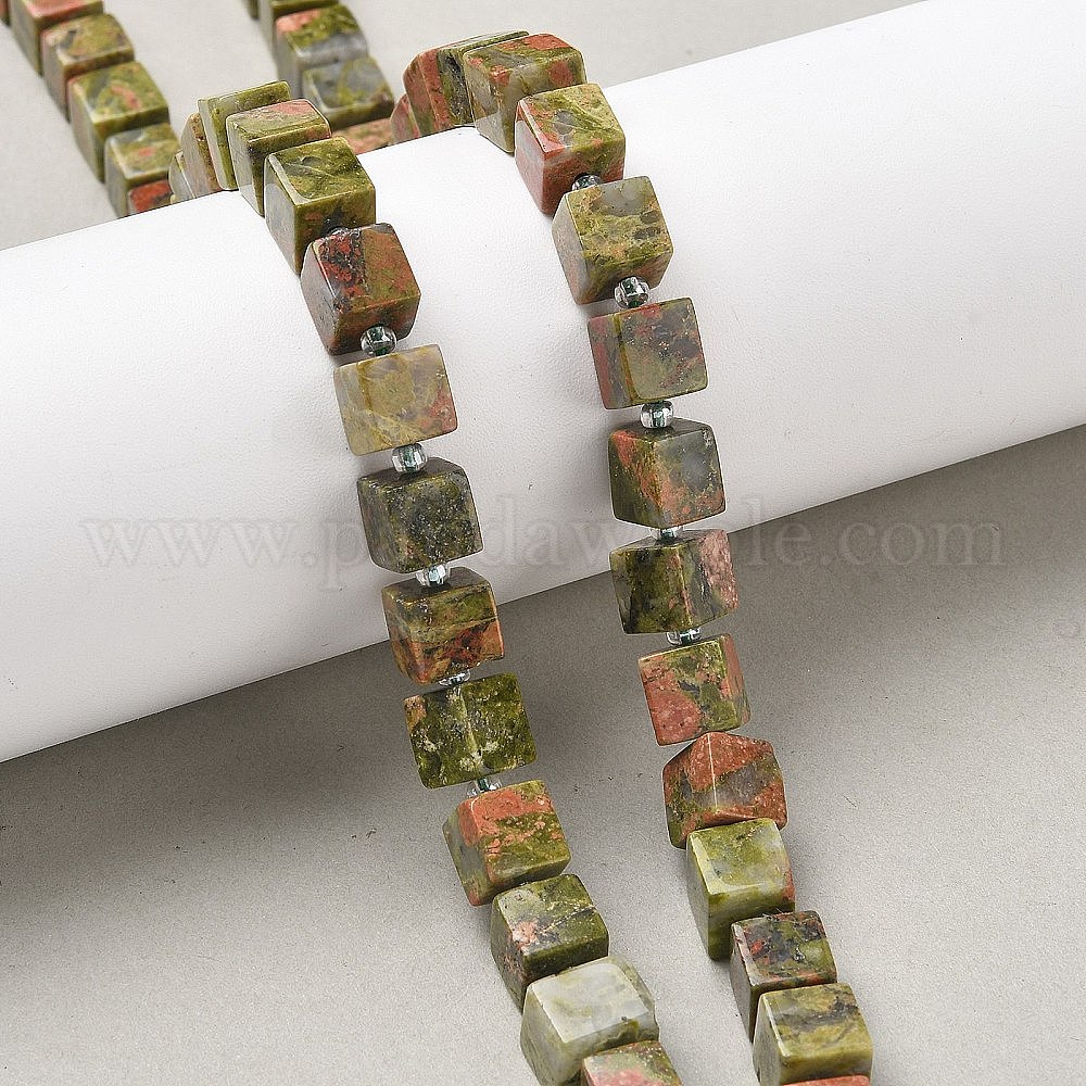 Природные Unakite бисер нитей, кубические, с бисером