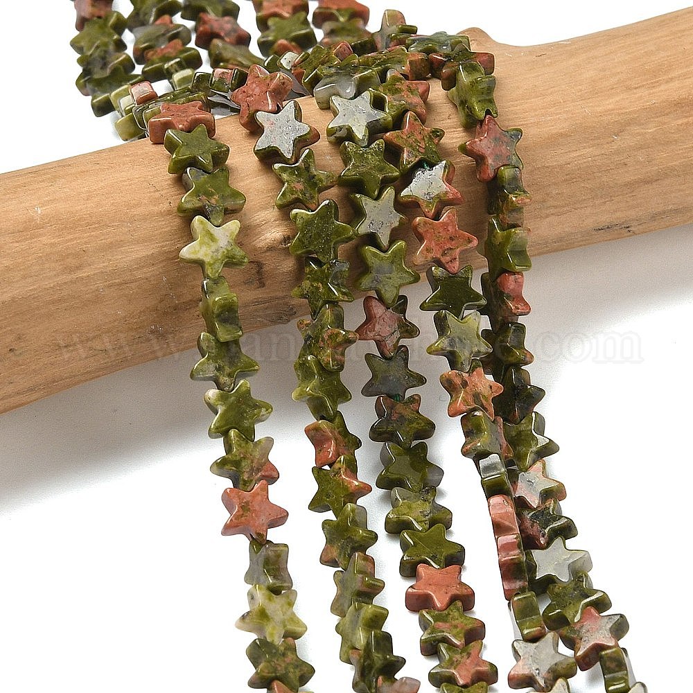 • Унакит Природные Unakite бисер нитей, звезда, 6x6x2 мм, отверстие : 0.7 мм, около 72 шт / нитка, 14.96'' (38 см)