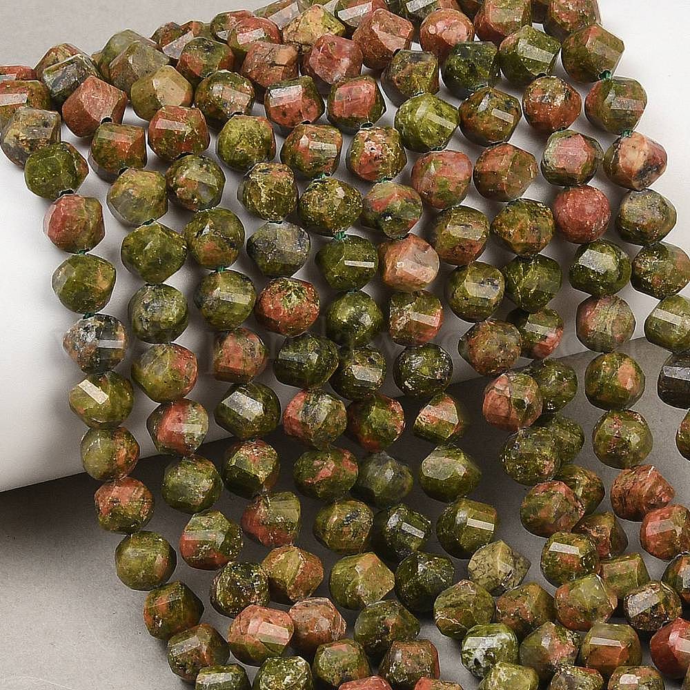 • Унакит Природные Unakite бисер нитей, граненые, твист, 6~6.5x5x5 мм, отверстие : 1 мм, около 58~61 шт / нитка, 14.17''~14.69'' (36~37.3 см)