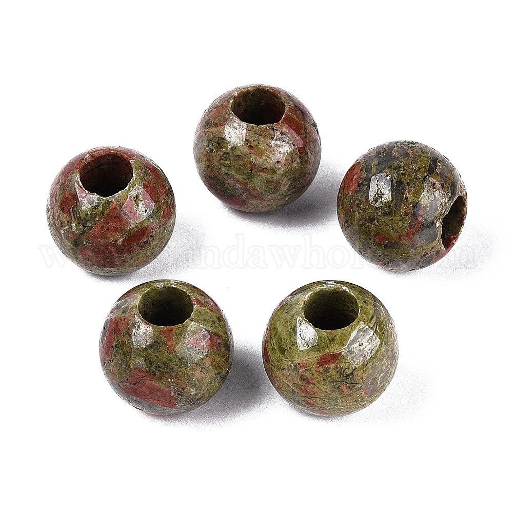 Бусины из природных Unakite, гладкая рондель, бусины с большим отверстием
