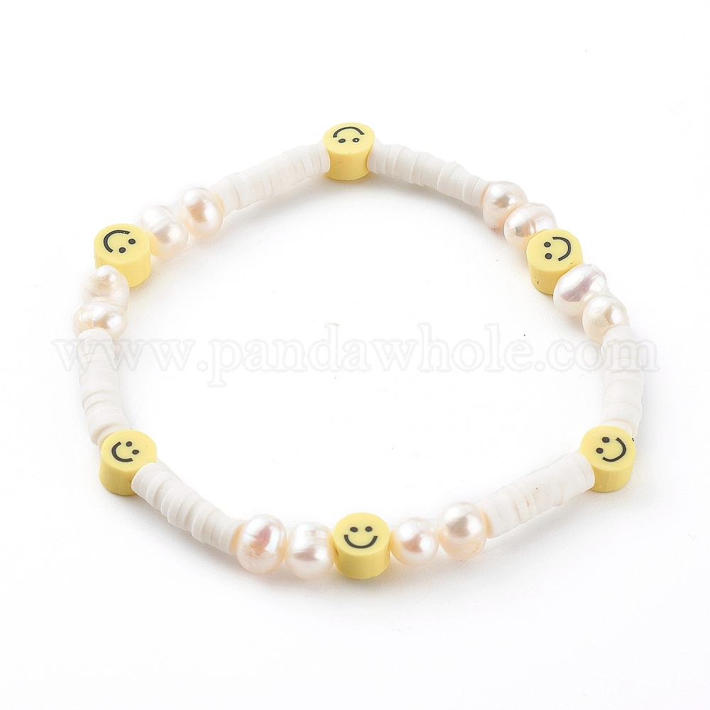 Браслеты хейши из полимерной глины ручной работы стрейч из бисера, с натуральным жемчугом, улыбающееся лицо