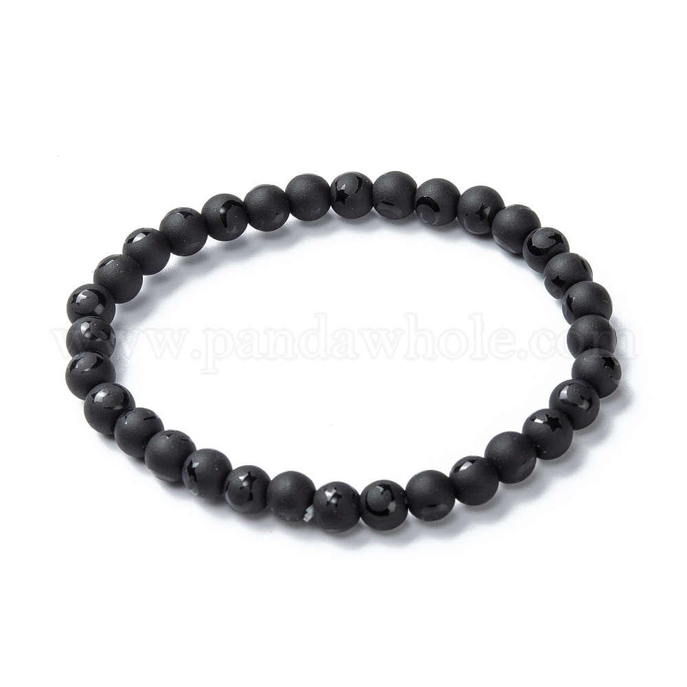 Матовые стеклянные бусы браслеты простирания, круглый с рисунком луны и звезд