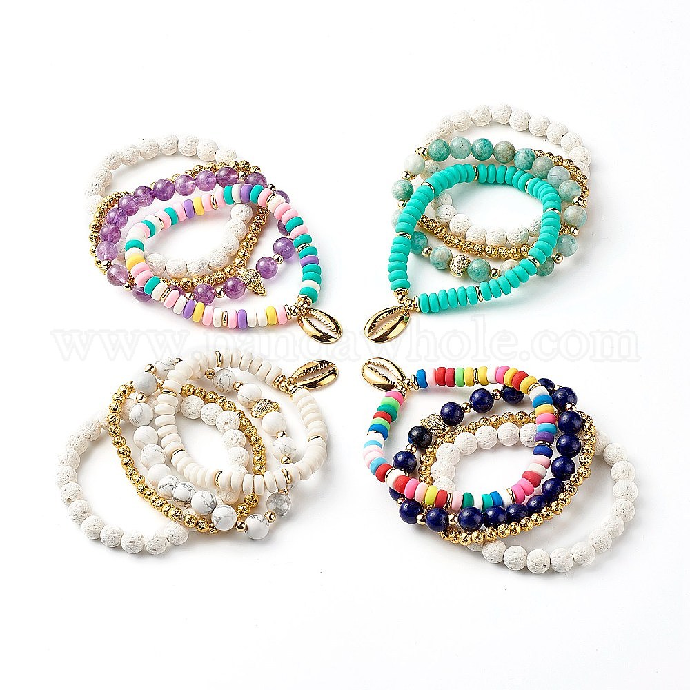 Набор браслетов с подвеской из кубического циркония в форме ракушки для девочек-подростков, браслеты из бусин из натуральной лавы, полимерной глины и натурального камня