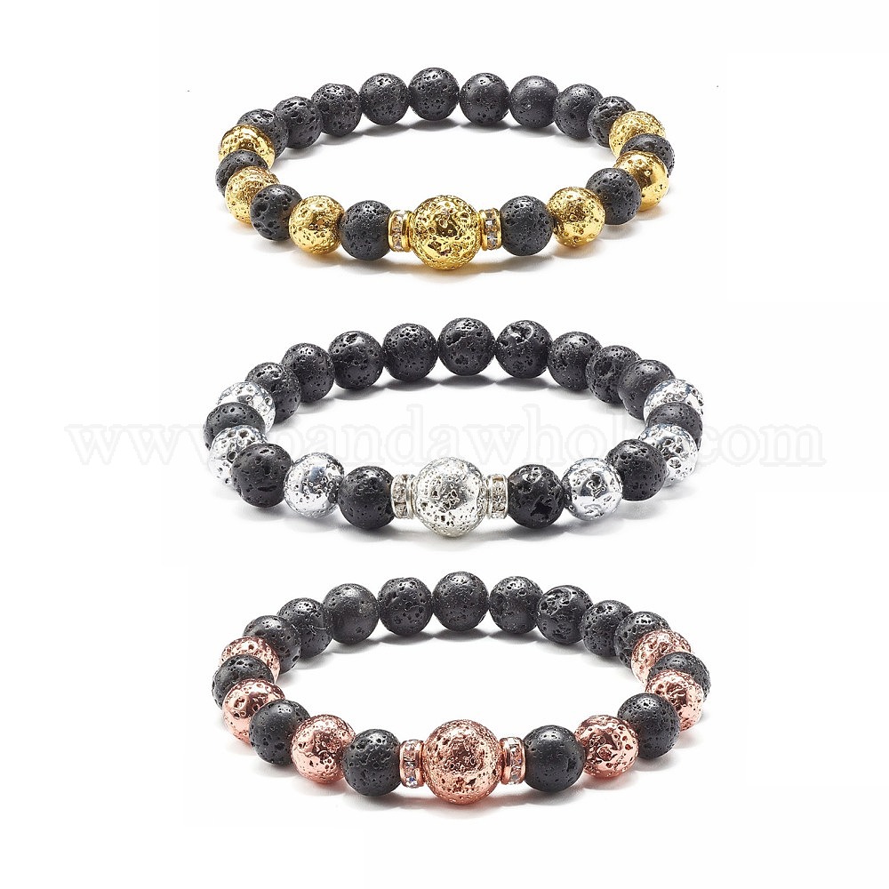 Гальванические браслеты из натуральной лавы, круглые бусины, эфирное масло, тревога, ароматерапевтические браслеты, латунные бусины со стразами стрейч браслеты набор для девочек женщин