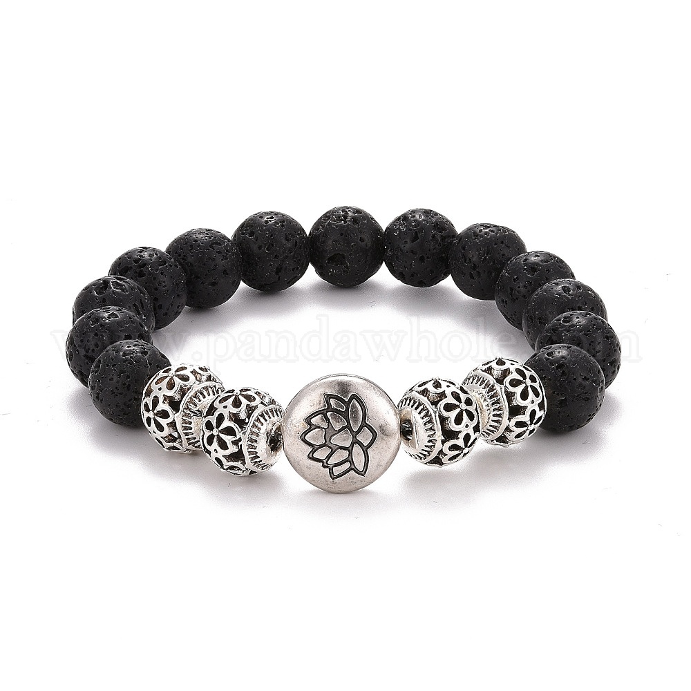 Круглые бусины из натурального лавового камня, эфирное масло, тревога, ароматерапия, стрейч-браслет для девочек, женщин, подарок, браслет из бисера из сплава лотоса, античное серебро