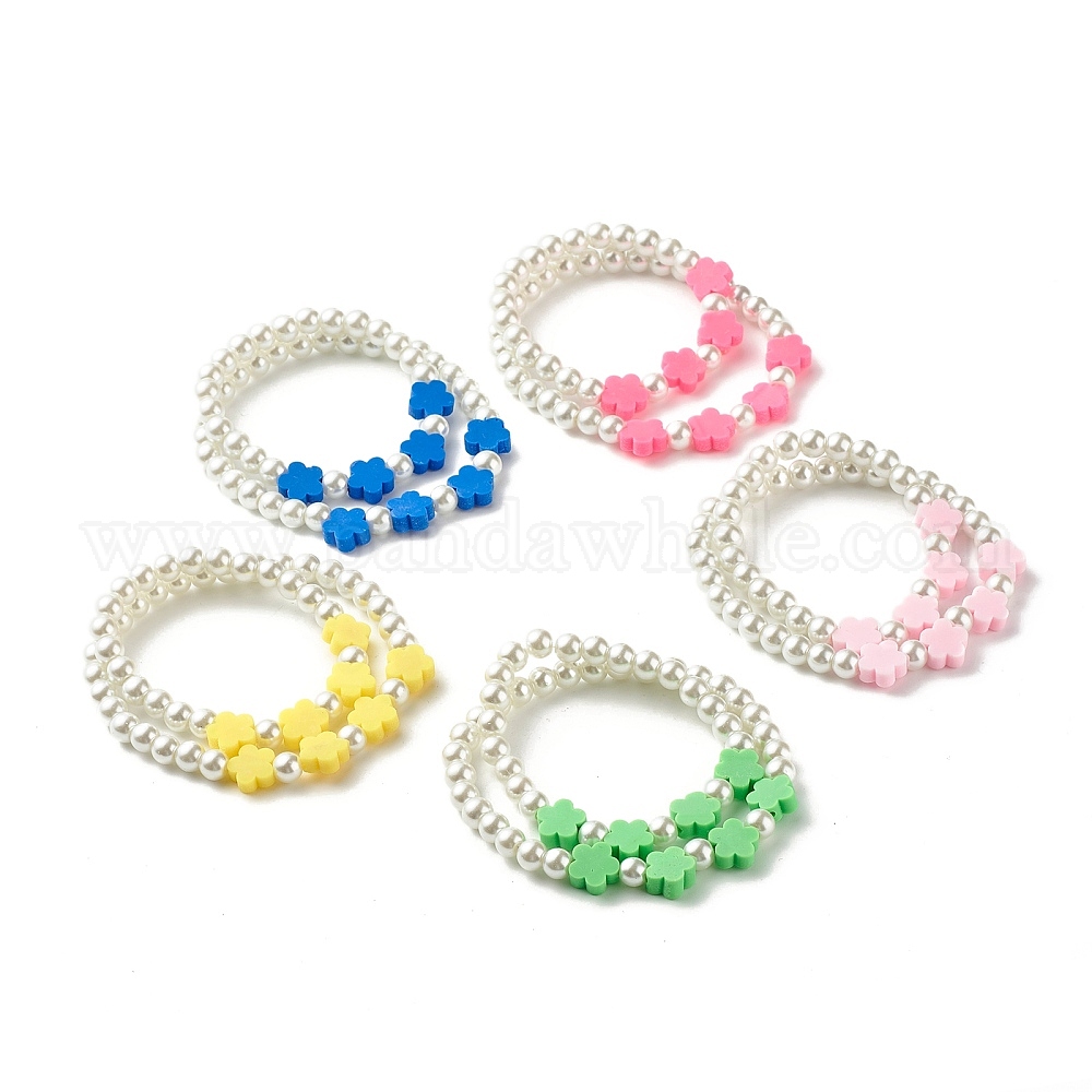 Комплект браслетов из цветочных бусин для детей и родителей, стеклянный жемчуг и бусины из полимерной глины парные браслеты, белые