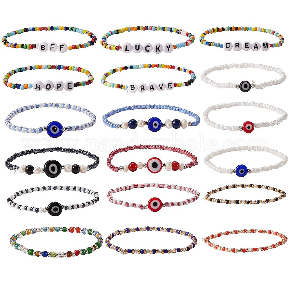 Набор браслетов со словами удачи, браслеты защиты от сглаза, браслеты из стеклянных бусин для девочек и женщин