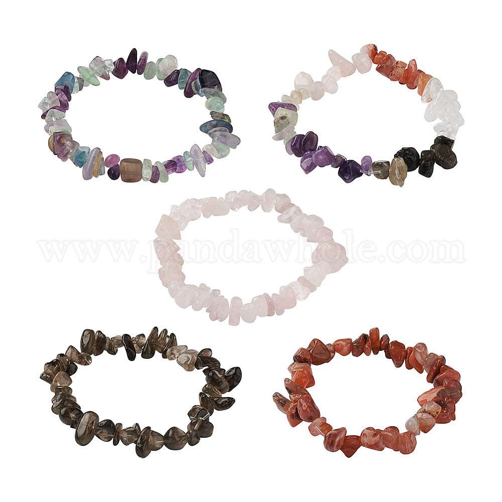 • Смешанные камни 5шт 5 стиль натуральный смешанный камень бусины эластичные браслеты для женщин, внутренний диаметр: 1-3/4~2 дюйм (4.5~5.2 см), 1 шт / стиль