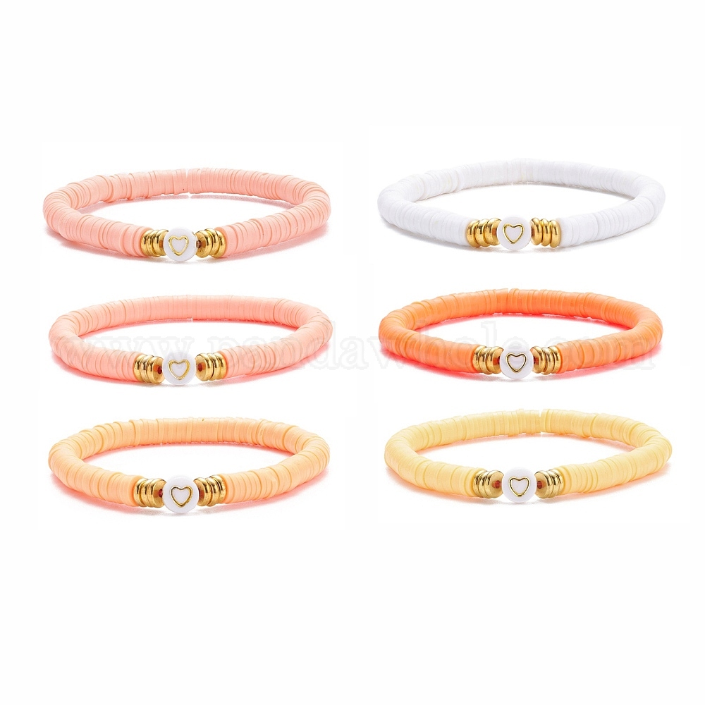 6 шт. 6 набор браслетов ручной работы из полимерной глины Heishi Surfer Stretch, акриловый браслет в форме сердца из бисера для женщин
