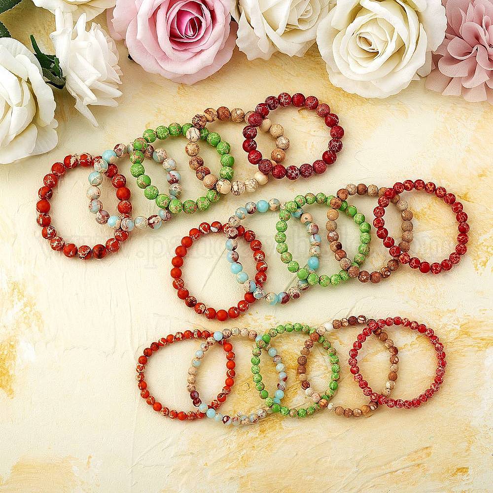 3Шт 3 размер имперская яшма круглые эластичные браслеты из бисера набор, украшения из драгоценных камней для женщин