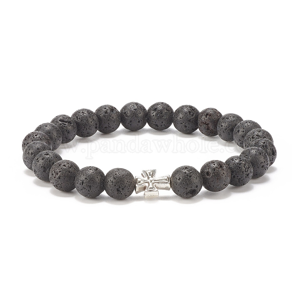 Эластичный браслет из натуральной лавы с крестом из сплава, украшения из драгоценных камней с эфирными маслами для женщин
