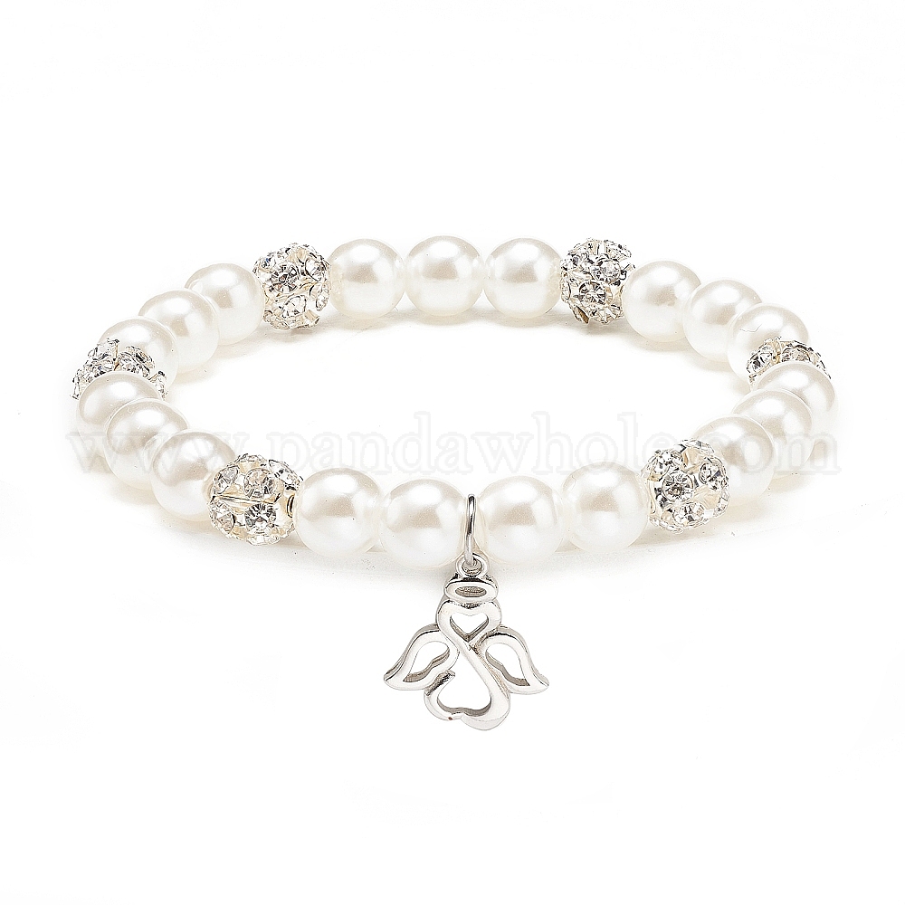 Абс-пластик имитация жемчуга и стразы браслет из бисера стрейч с подвеской из сплава для женщин, белые