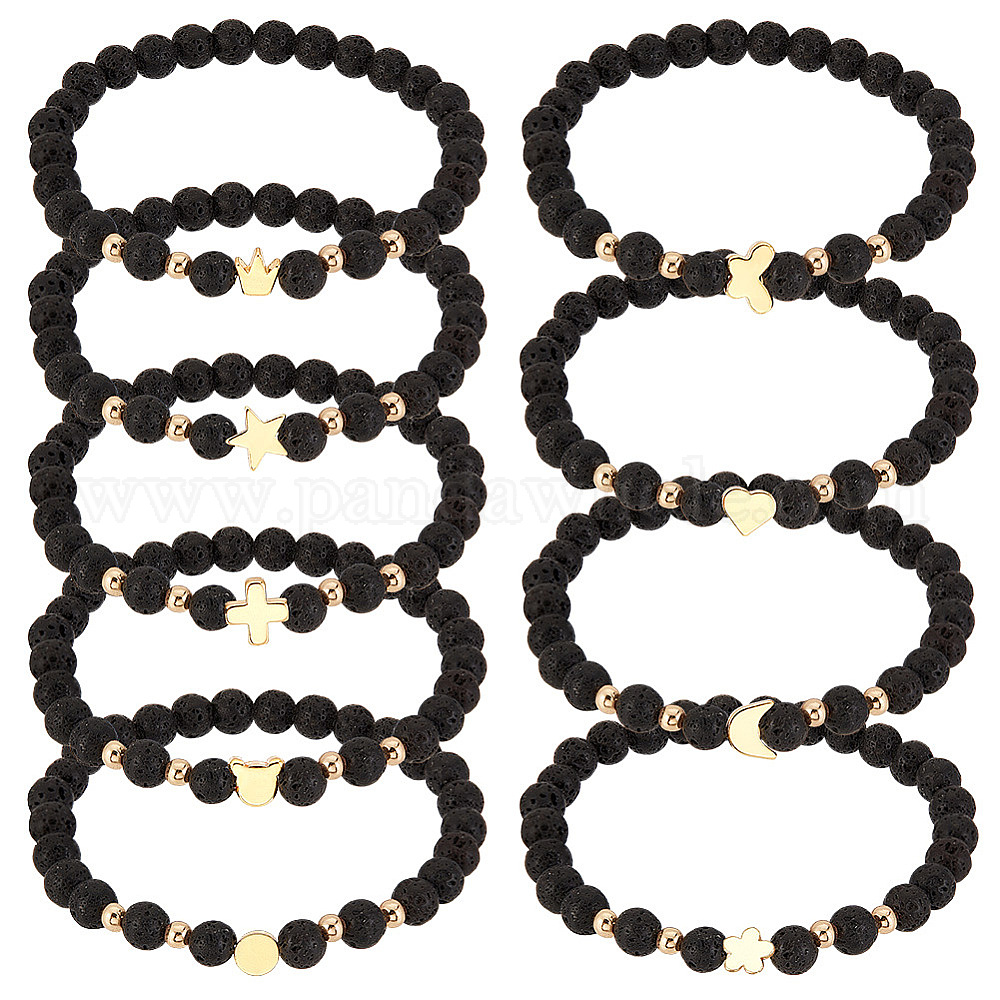 1 набор браслетов из латунных бусин «медведь, крест, луна, корона, сердце и бабочка», браслеты для женщин с эфирным маслом лавы