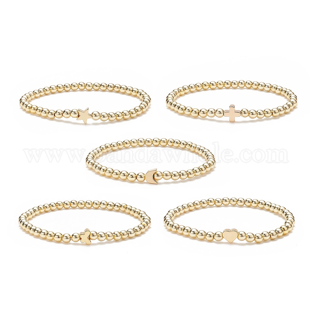 5 шт. 5 браслеты в стиле звезды, креста, луны, сердца и бабочки из латуни и синтетического гематита, украшенные бусинами, для женщин