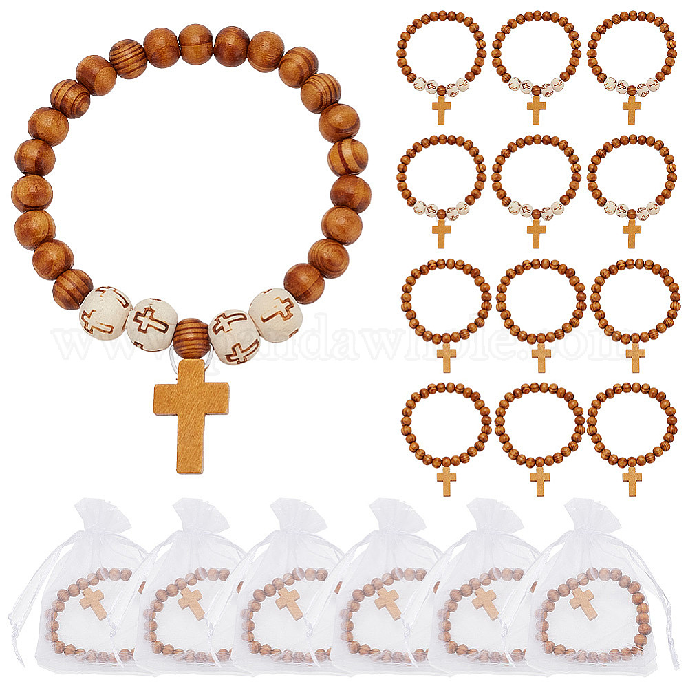 30шт 2 стиль натурального дерева круглые бусины эластичные браслеты с крестообразными подвесками для мужчин и женщин