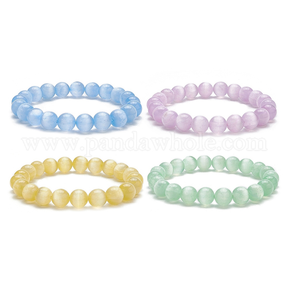 Эластичный браслет из окрашенного натурального селенита с круглыми бусинами