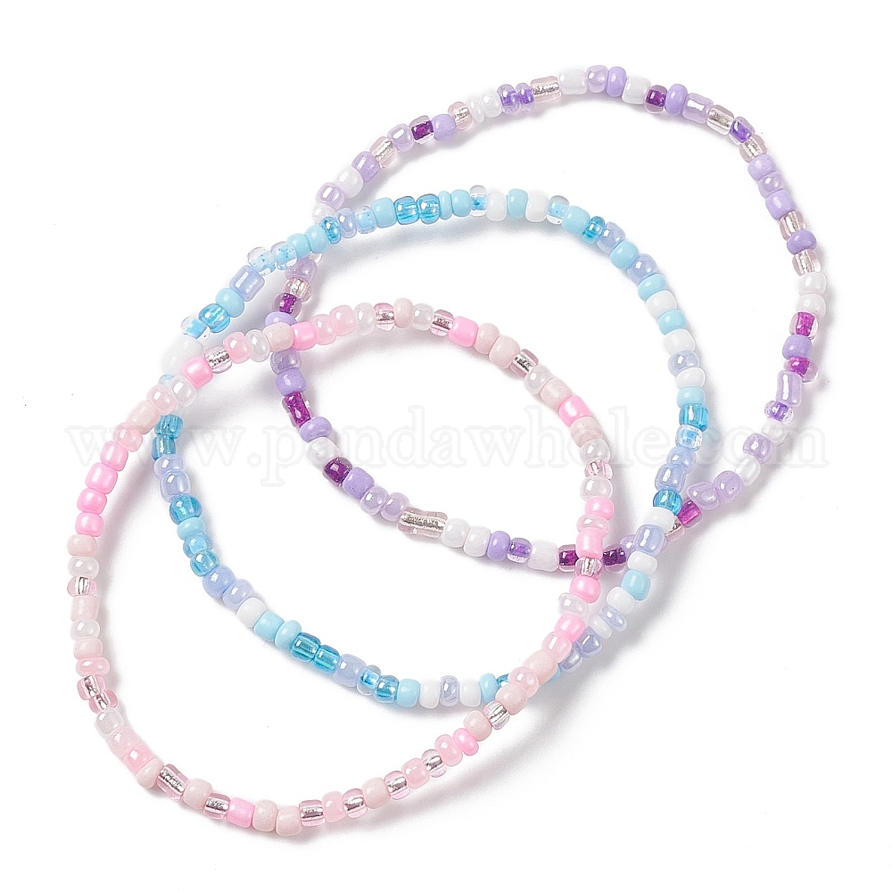 3шт 3 комплект браслетов из цветного стекла, украшенный бисером