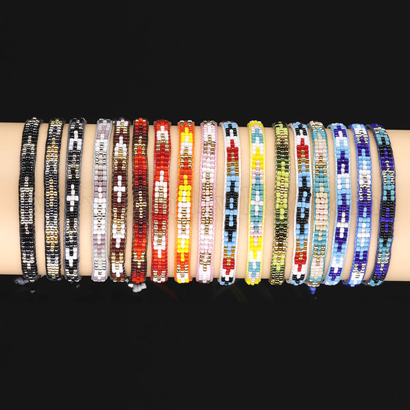 Плетеный браслет ручной работы из разноцветных японских рисовых бусин - креатив, , ручной работы.