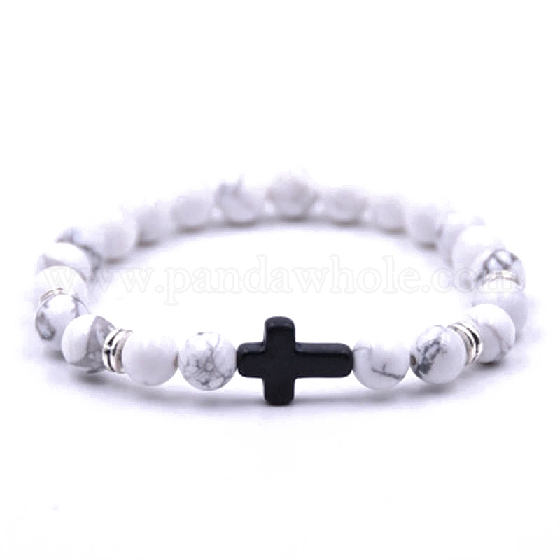 Эластичный браслет из смешанных натуральных и синтетических драгоценных камней с крестообразными бусинами