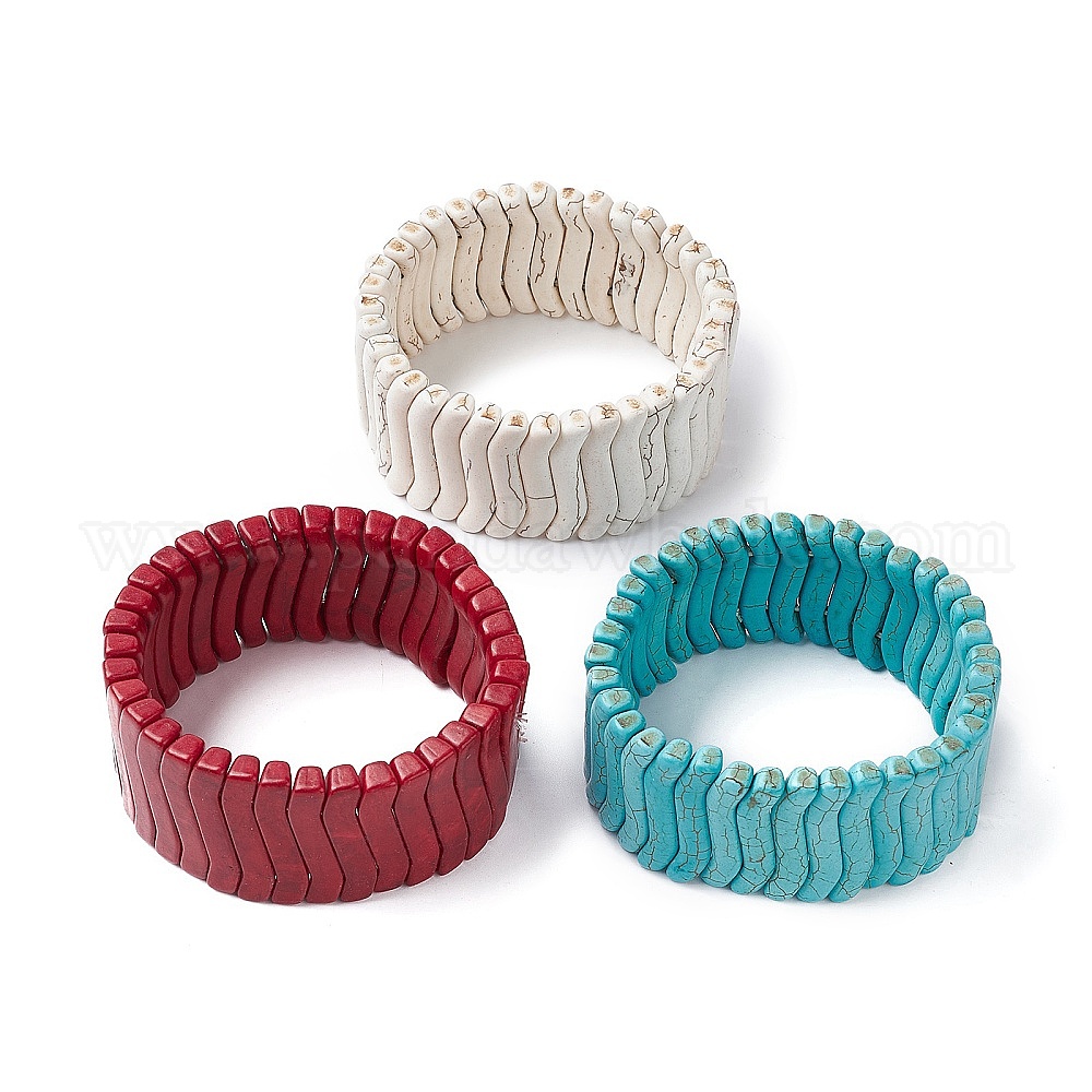 Эластичные браслеты из окрашенного синтетического бирюзового волнистого бисера, плитка браслет