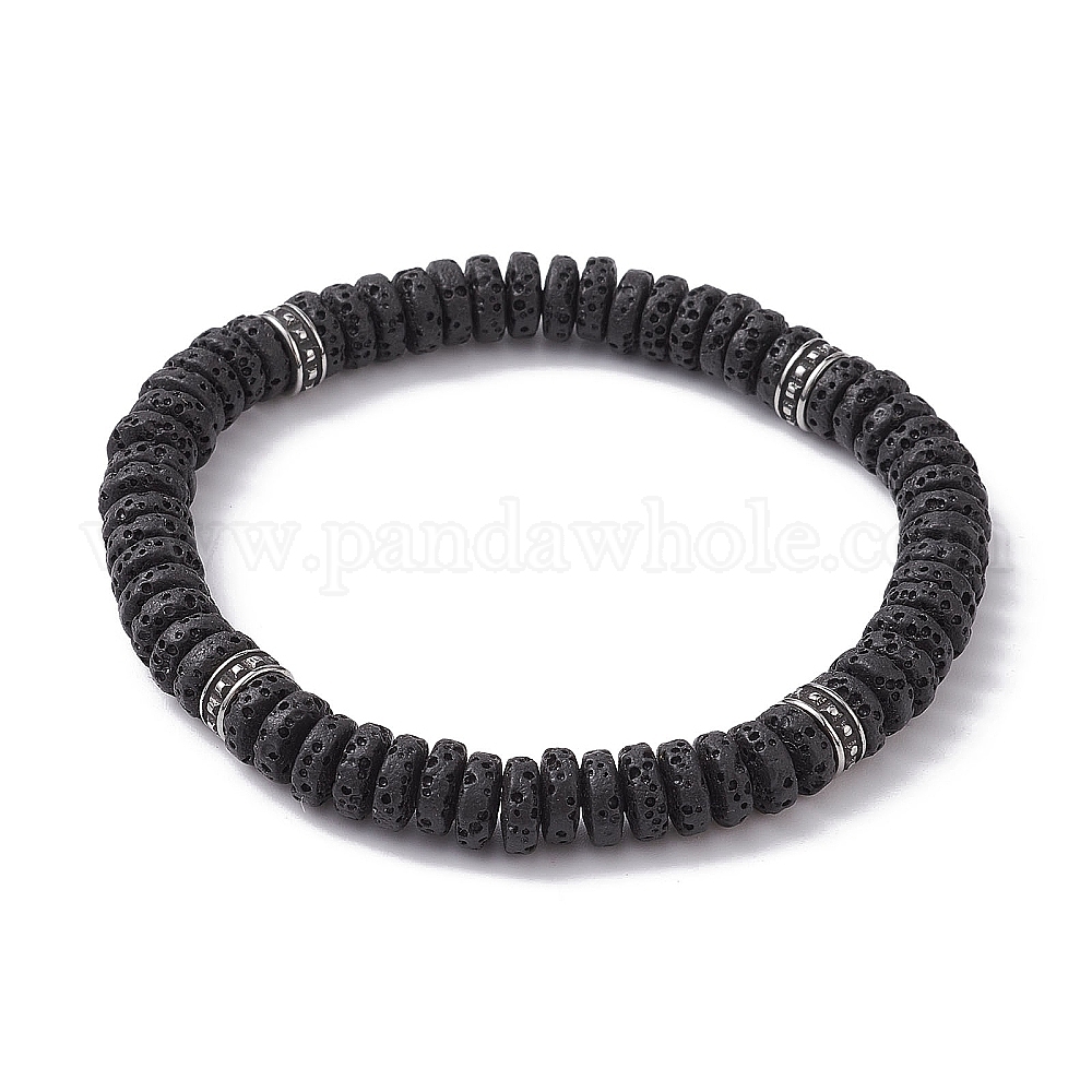 Эластичный браслет из натуральной лавы и 304 хирургической нержавеющей стали с дисками из бисера