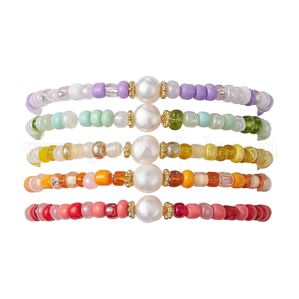 Женские эластичные браслеты из семян травы и натурального жемчуга