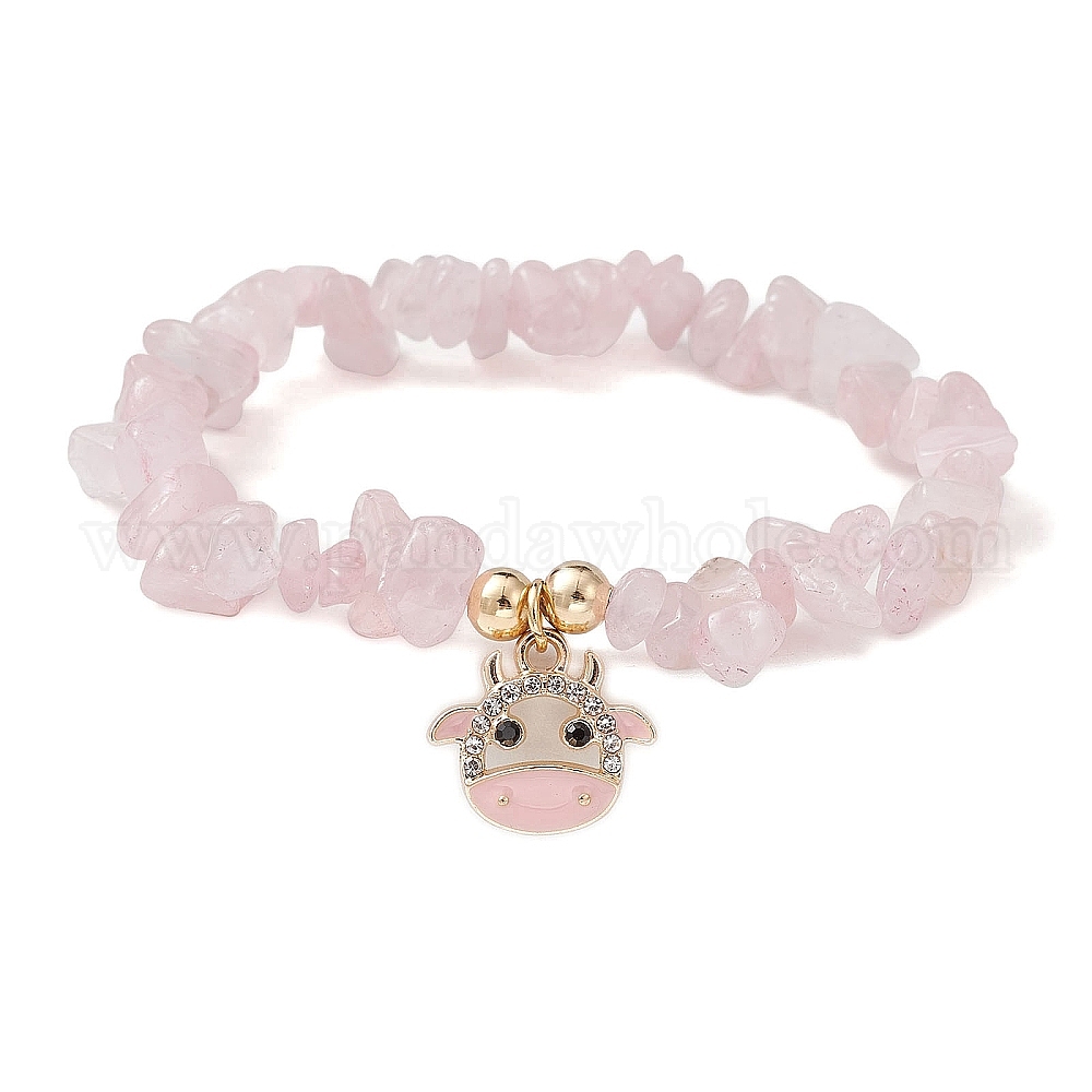 Эластичные браслеты из натуральной смешанной крошки драгоценных камней, с подвесками в виде скота из сплава эмали