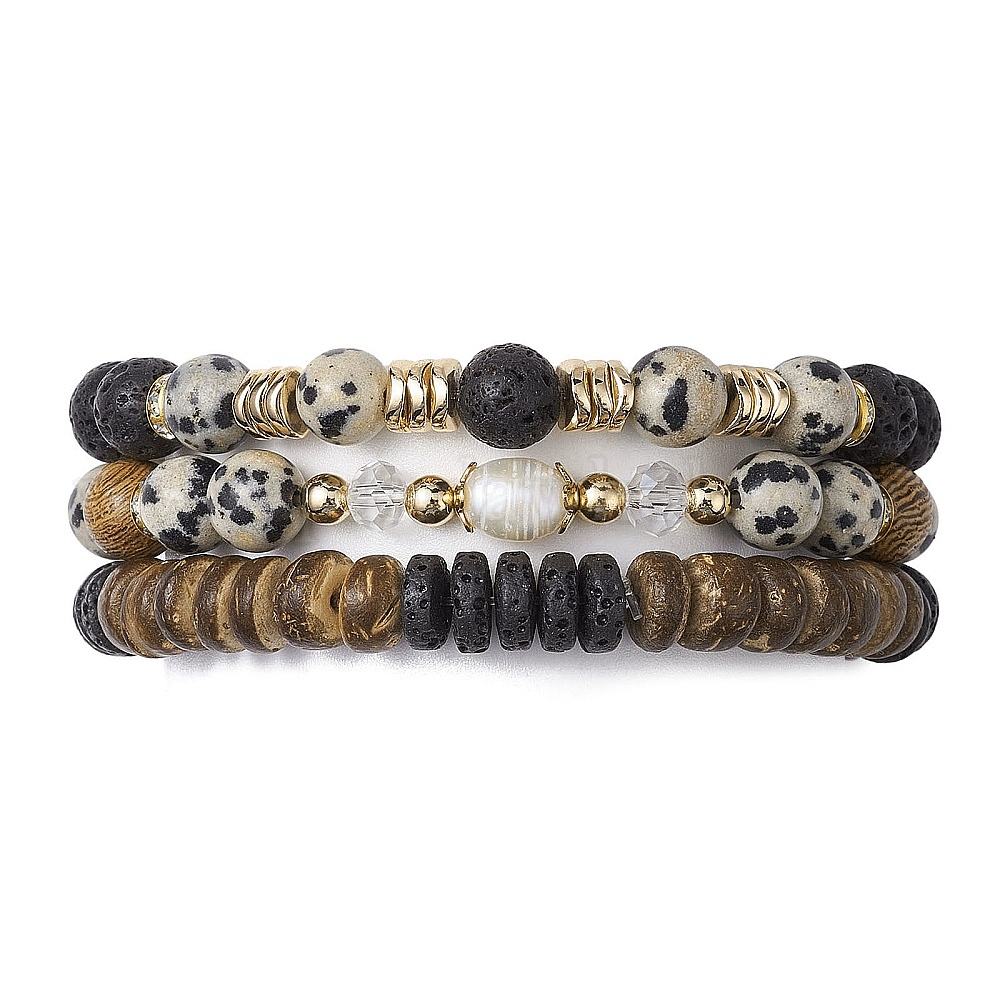 3 шт. 3 набор эластичных браслетов в стиле натуральной лавы, далматинской яшмы и кокоса, расшитых бисером, штабелируемые браслеты (02PWMC)