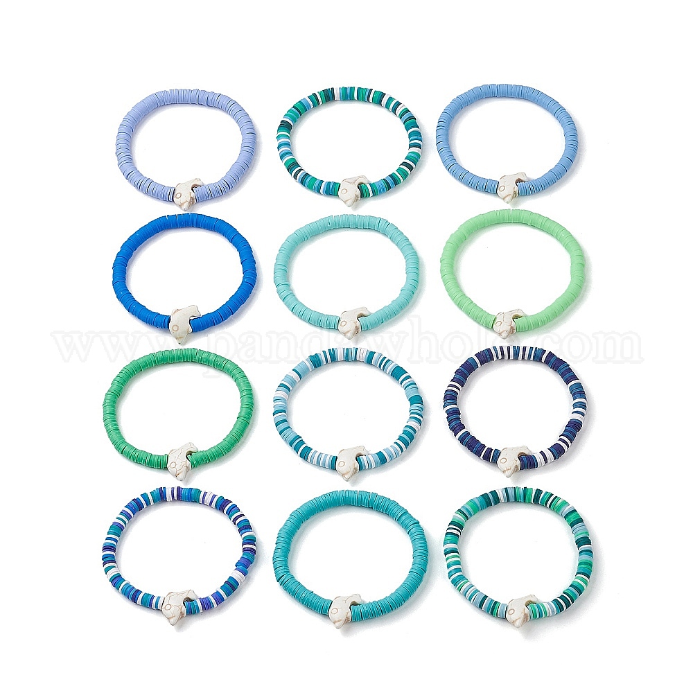 12 шт. 12 цвета, набор эластичных ожерелий Heishi Sufer из полимерной глины, Многофункциональные браслеты с дельфинами из синтетической бирюзы (02QDHG)
