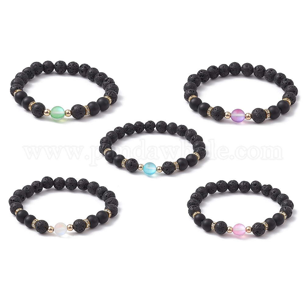 • (52) Непрозрачная лаванда Круглый эластичный браслет из натуральных и синтетических драгоценных камней с бусинами, разноцветные, внутренний диаметр: 2-1/4 дюйм (5.8 см)