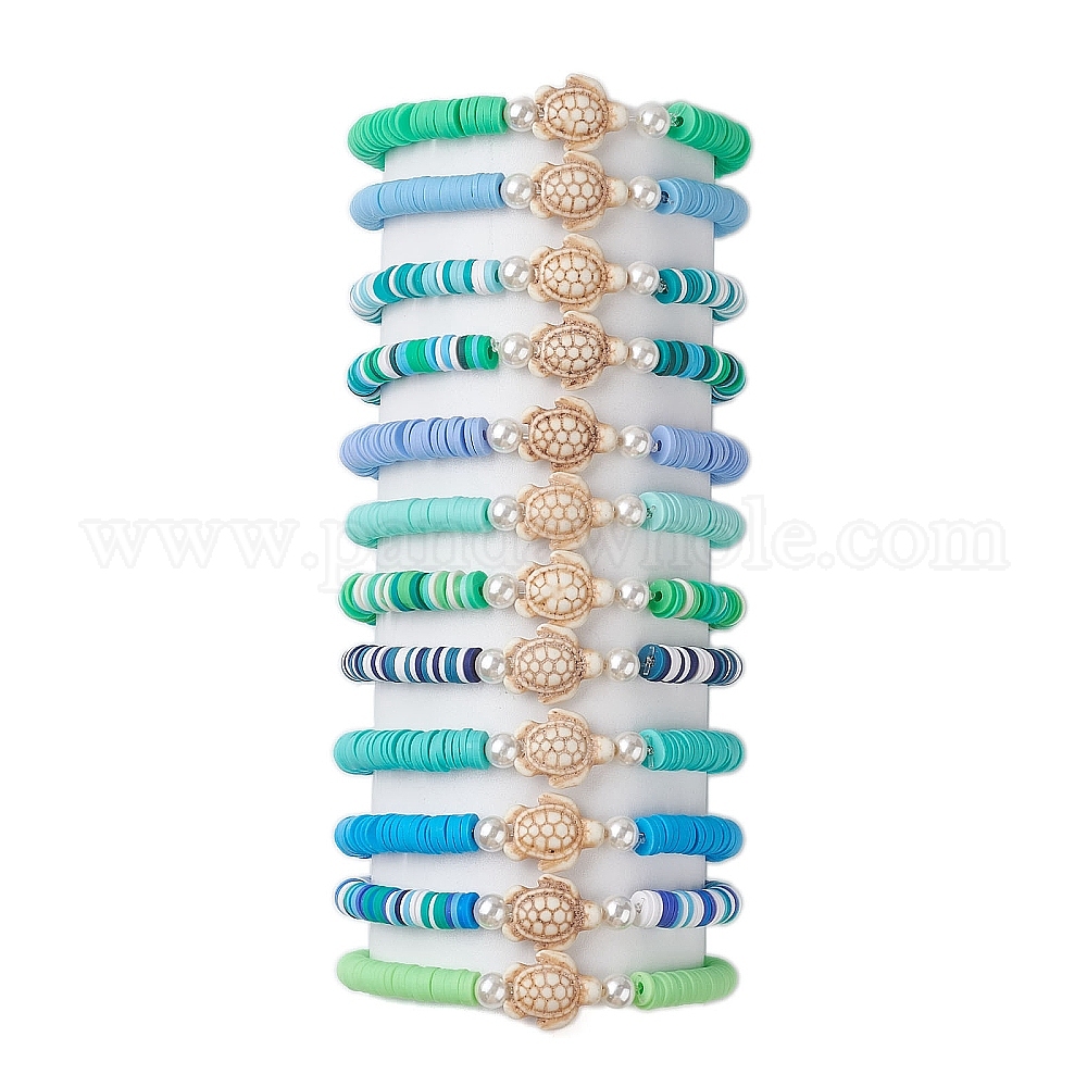 12шт. 12 набор эластичных браслетов в стиле синтетической бирюзы и черепахи, сборные браслеты в стиле преппи из полимерной глины