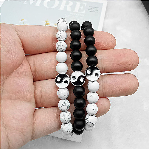 Эластичные браслеты из смешанных камней из натуральных и синтетических камней с бисером инь-янь