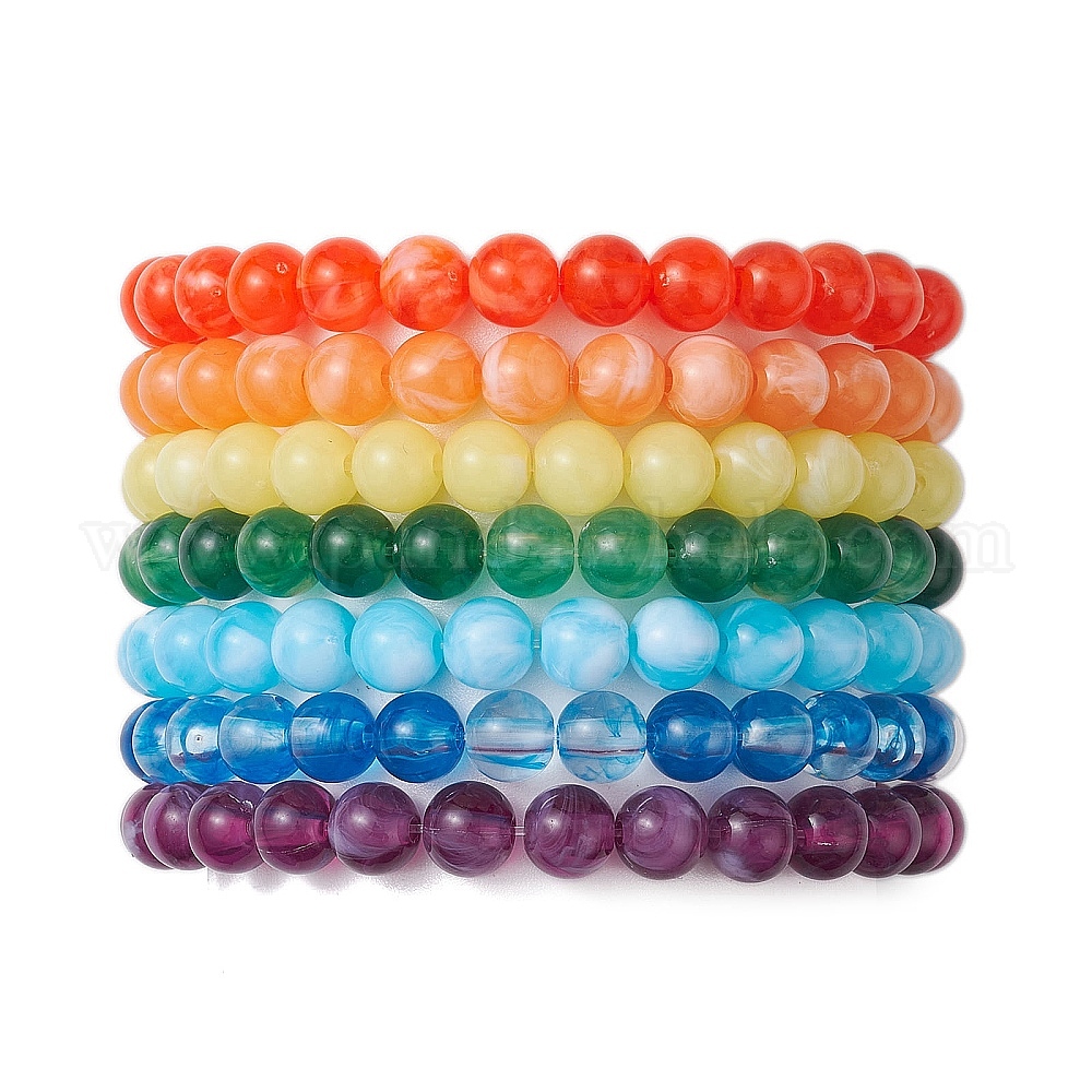 7 шт. 7 цвета, набор эластичных браслетов из акрила, имитация нефрита, круглые, из бисера, штабелируемые браслеты (02RQZ1)