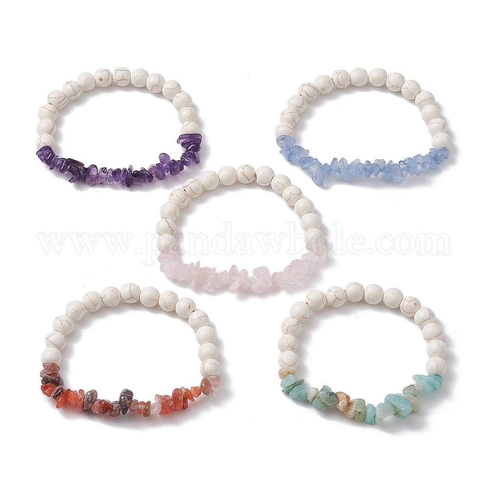 Эластичные браслеты из натуральных смешанных драгоценных камней и синтетической бирюзы, расшитые бисером